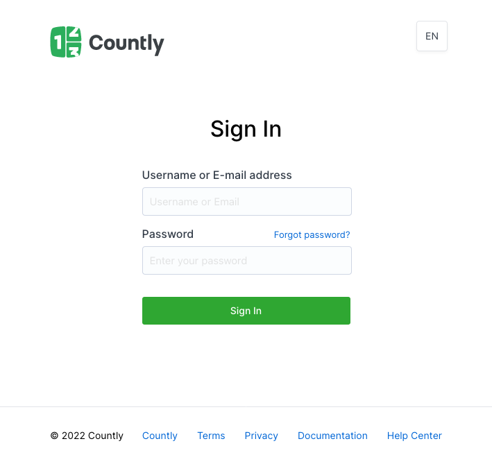 Accessing the address for your Countly instance after this initial setup directs you to the login page.